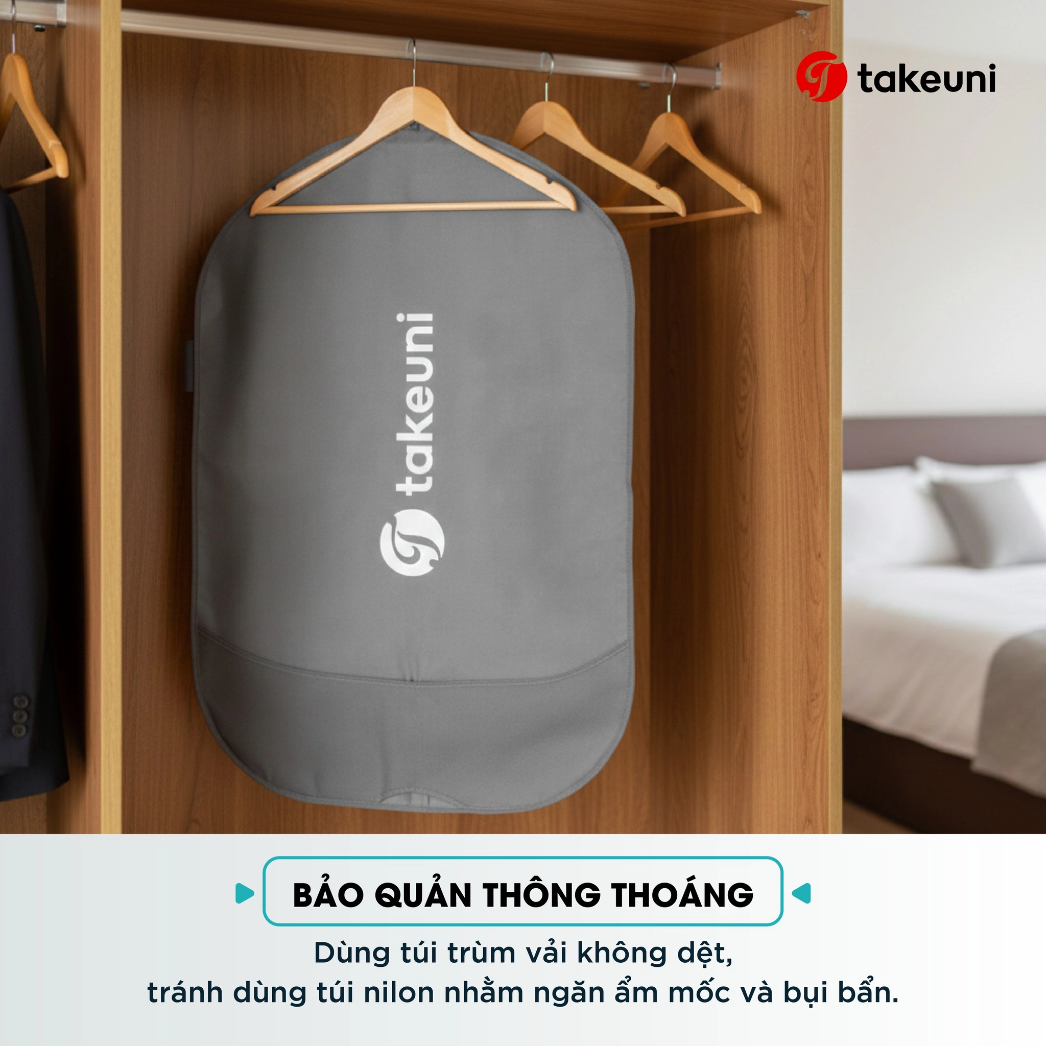 - Sử dụng túi trùm vải không dệt: Thay vì sử dụng túi nilon kín mít (dễ gây bí hơi và tích tụ ẩm), hãy dùng túi trùm bằng vải chuyên dụng. Điều này giúp vải được “thở”, ngăn chặn bụi bẩn và ẩm mốc hiệu quả.