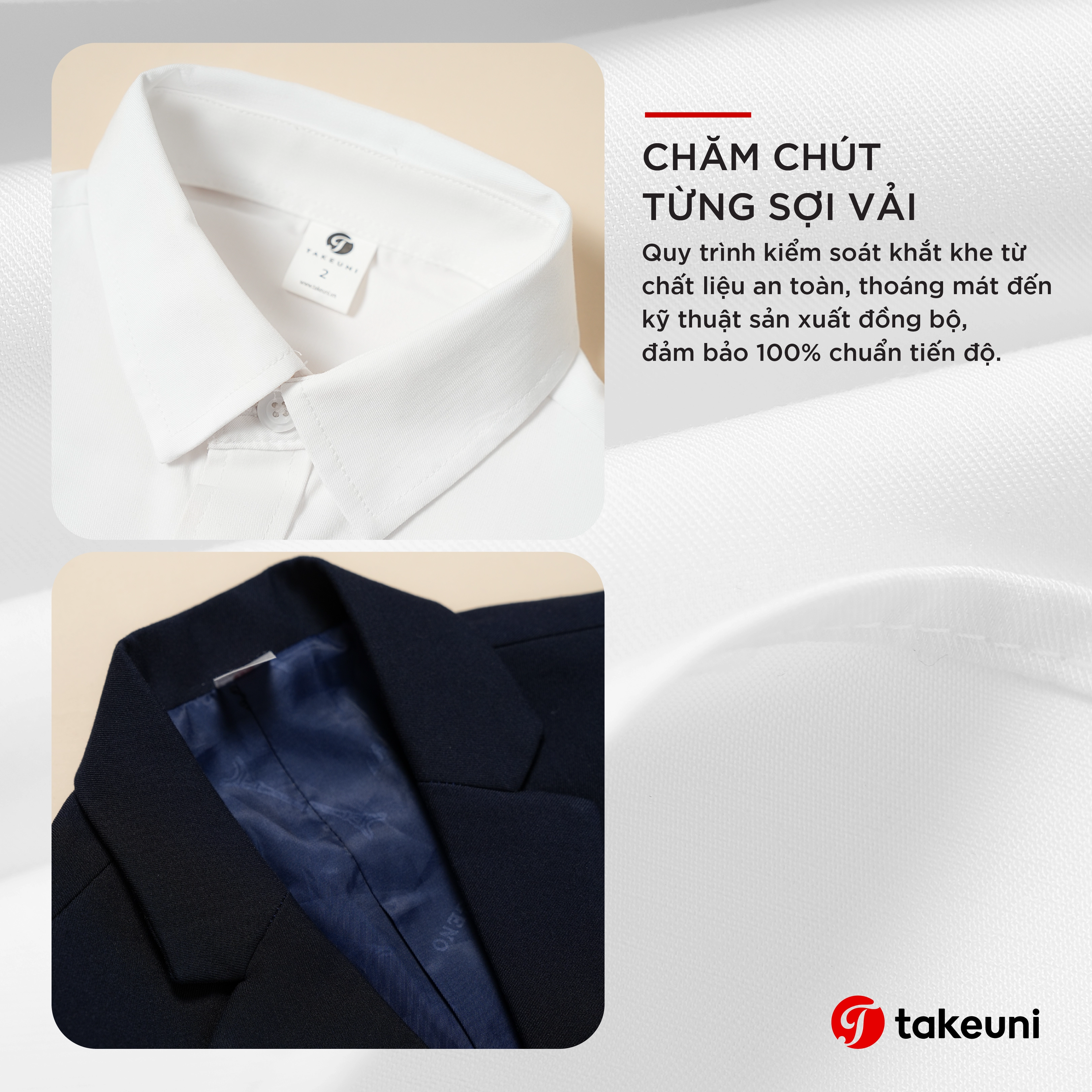 Sự tự tin của học sinh bắt nguồn từ việc các em cảm thấy mình đẹp và được trân trọng trong bộ đồ đang mặc. Đó là lý do TakeUni luôn chăm chút từng chi tiết nhỏ như nếp gấp cổ áo, đường may gấu quần… để mỗi học sinh khi khoác lên mình bộ đồng phục đều cảm nhận được niềm tự hào là một thành viên của ngôi trường ấy.