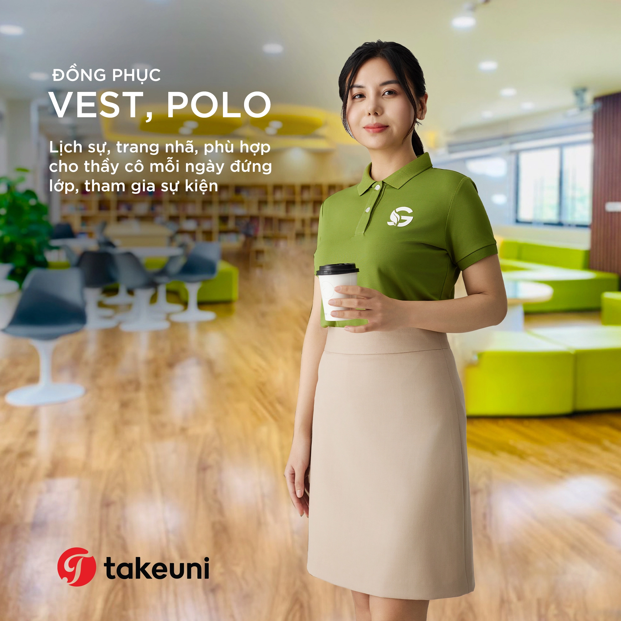 TakeUni đồng hành cùng doanh nghiệp xây dựng hình ảnh chuyên nghiệp từ thiết kế → chọn chất liệu → sản xuất → giao hàng.