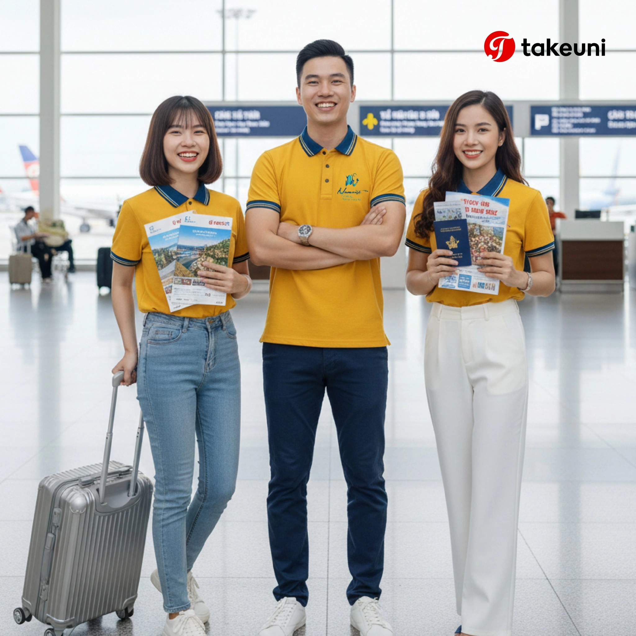 Mỗi chiếc áo Polo vàng không chỉ mang vẻ đẹp thẩm mỹ mà còn là lời cam kết về chất lượng dịch vụ mà Nam Việt Tour dành cho du khách. Sự tỉ mỉ trong từng đường kim mũi chỉ của TakeUni giúp mỗi hướng dẫn viên trở thành một đại sứ thương hiệu thực thụ, lan tỏa vibe trẻ trung và tin cậy trên khắp mọi miền tổ quốc.