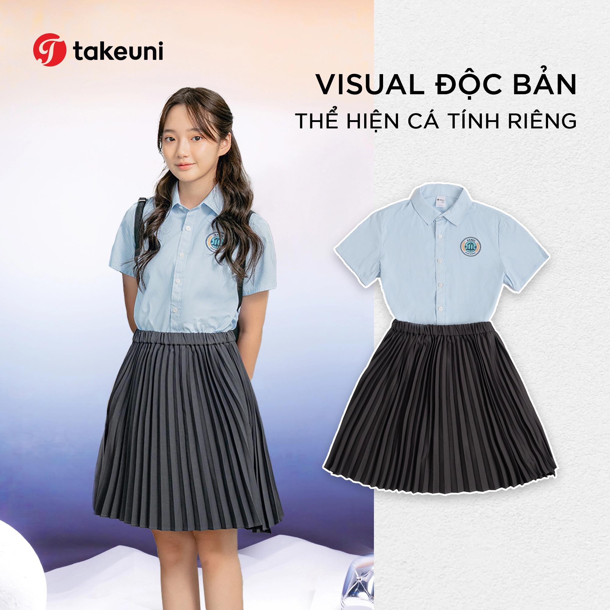 - Sự giao thoa văn hóa: Các thiết kế của TakeUni là sự kết hợp nhuần nhuyễn giữa tư duy thời trang hiện đại (form dáng năng động, trẻ trung) và giá trị truyền thống (sự chỉn chu, mực thước), giúp các em vừa cảm thấy thoải mái, vừa giữ được tác phong đạo đức của người học trò.
