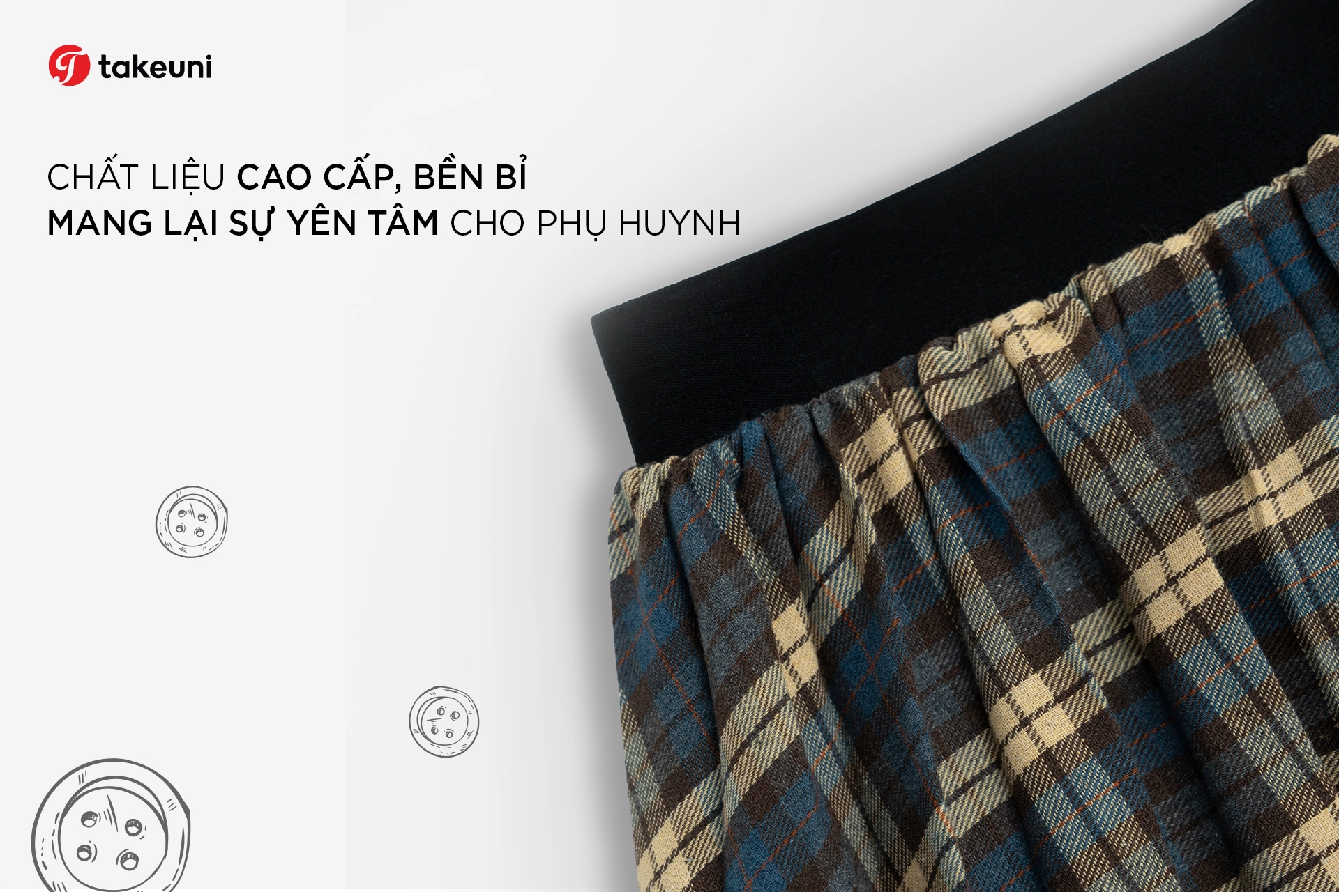 Một bộ đồng phục đẹp chỉ là điều kiện cần, một bộ đồng phục chất lượng mới là điều kiện đủ để đồng hành cùng các em học sinh suốt cả năm học. Tại TakeUni, chúng tôi thực hiện triết lý “tinh chỉnh trong từng sợi vải”.